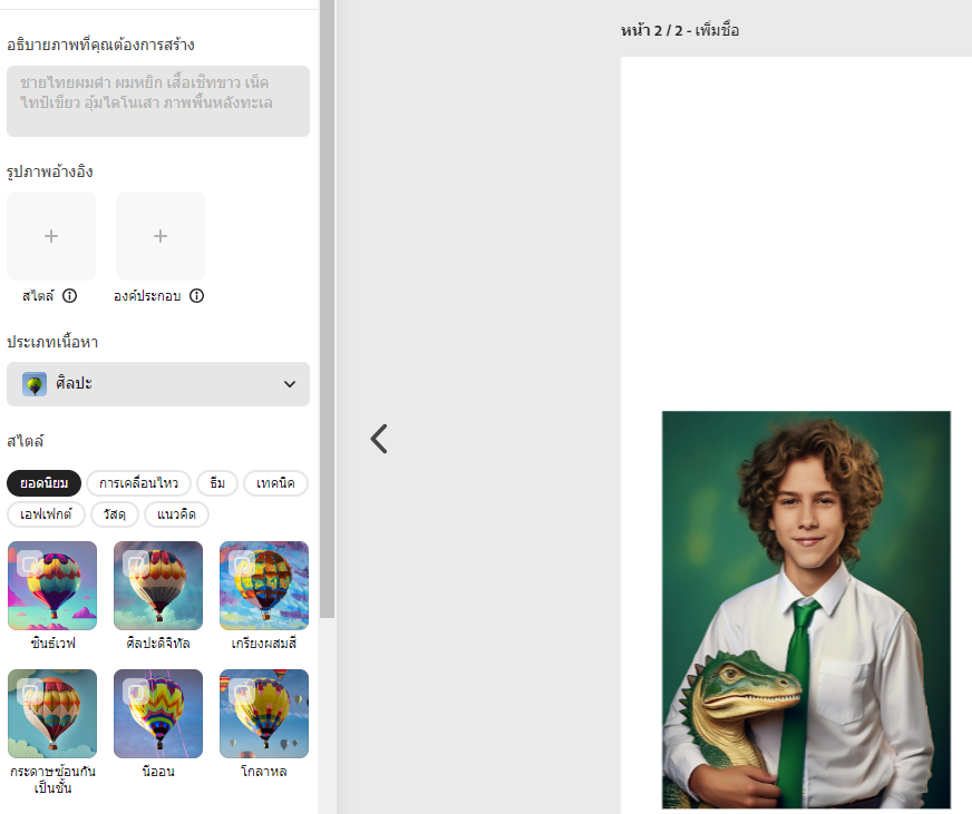 ให้แคบหน้าจอที่แสดงทั้งคำสั่ง Prompt กับ รูปที่สร้างจากข้อความ คนละ 1 รูป