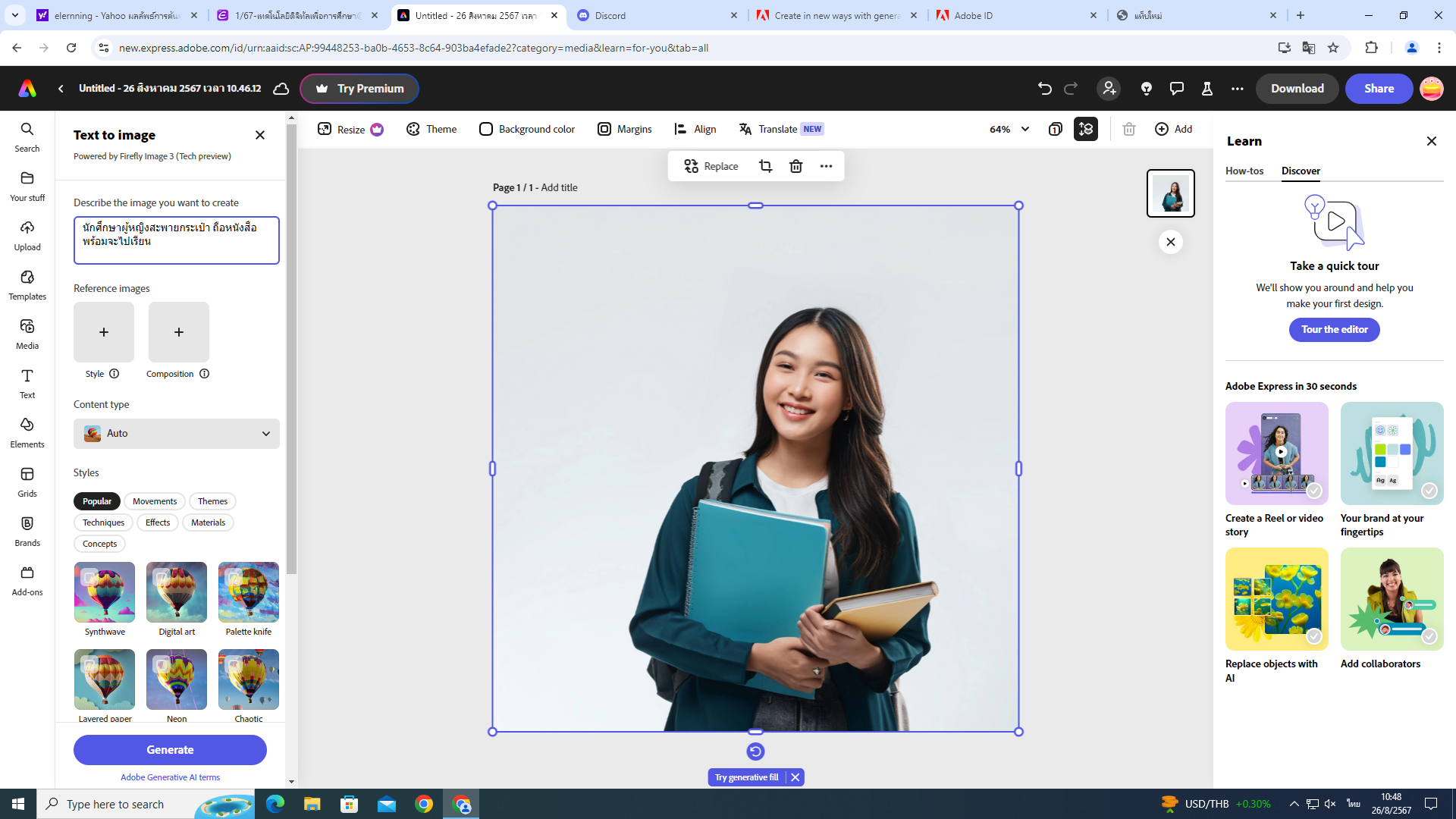 ตอบ: การสร้างรูปภาพจาก Adobe Firefly
