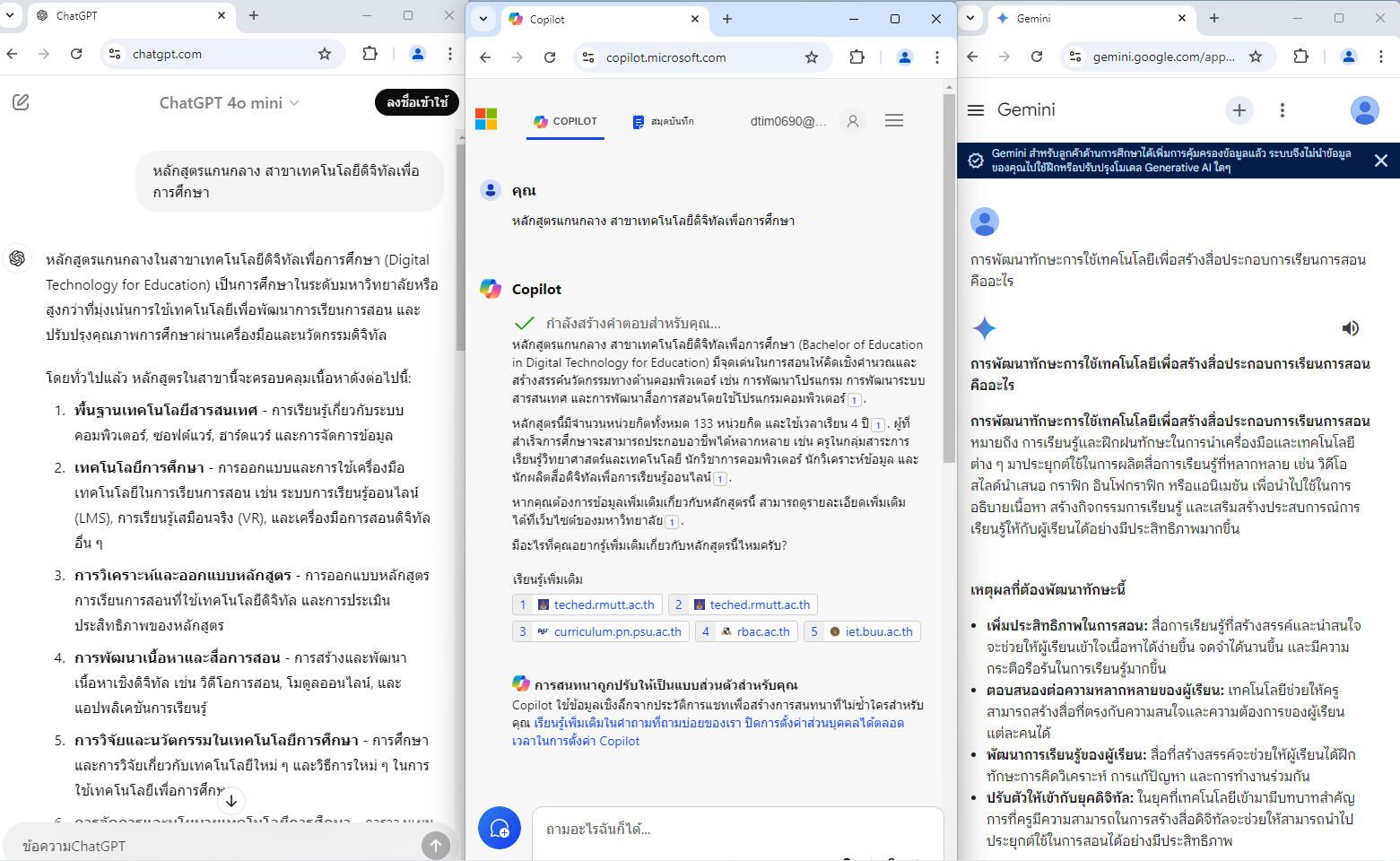 เรียงลำดับความชอบ microsoft Copilot Genmini Chat GPT